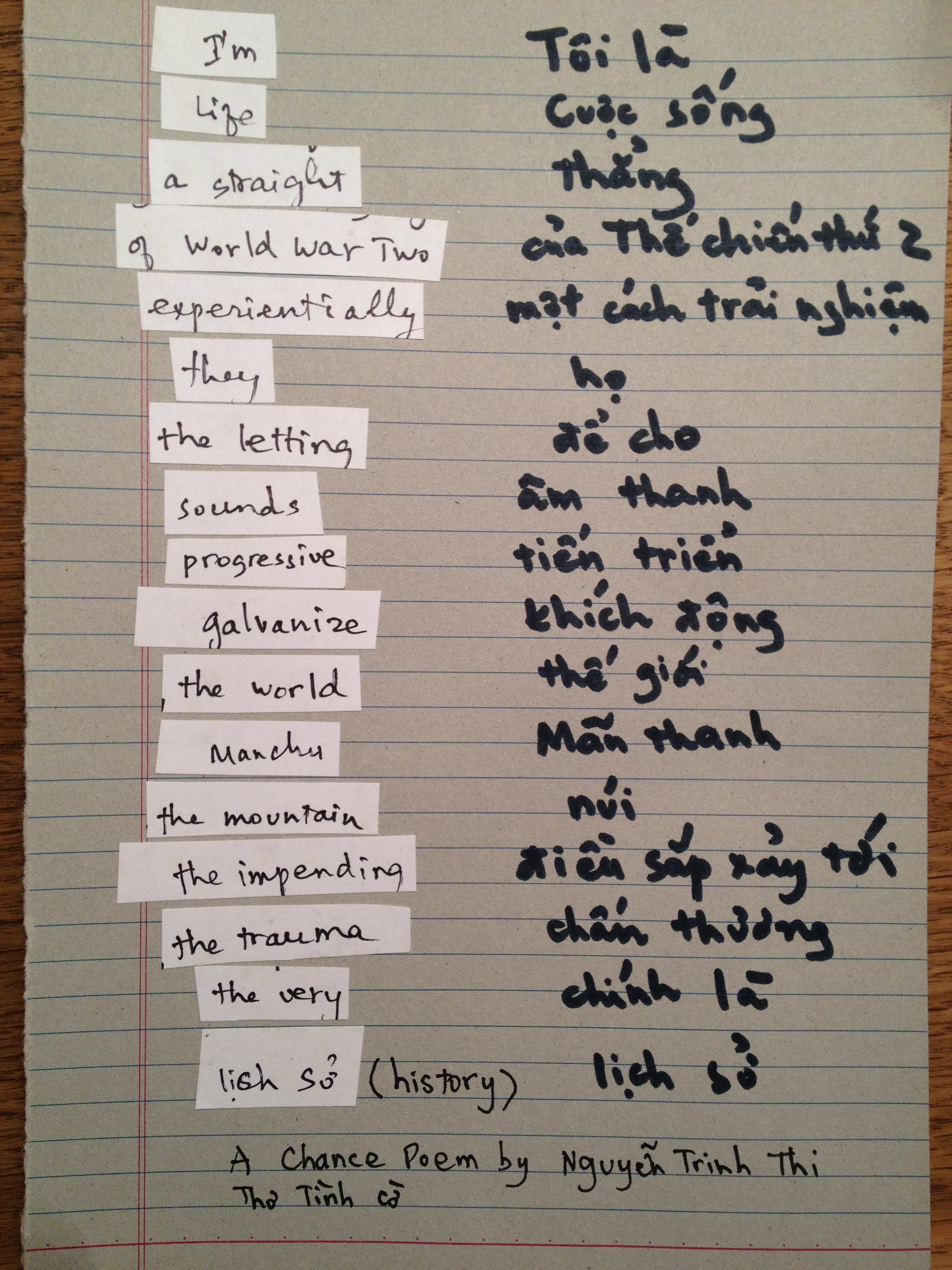 Nguyễn Trinh Thi Nguyễn Trinh Thi Thơ tình cờ Chance Poem Share this: Share on X (Opens in new window) X Share on Facebook (Opens in new window) Facebook Like Loading... Related